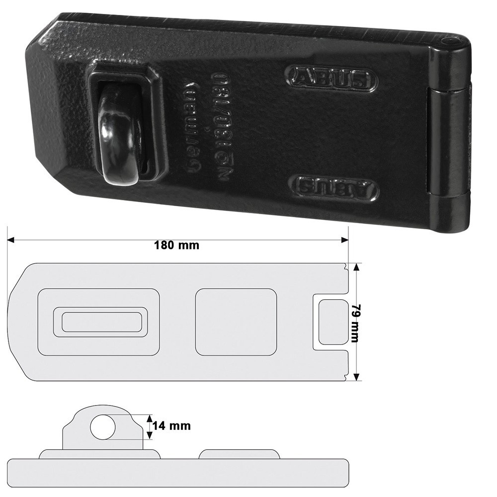 Abus Granit 130/180 biztonsági lakatpánt. Extrém védelmet nyújtó biztonsági lakatpánt, mely tökéletesen alkalmazható az Abus 37-es jelölésű lakatokkal. Biztonsági szint: 10/10. Méret: lásd a képen. Súly: 1670g.