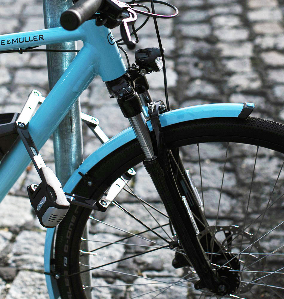 • SH - Zártartó a kerékpáron való könnyű szállításhoz, amely a praktikus rögzítő hevedereknek köszönhetően szerszám nélkül felszerelhető. A zár elöl a tartóból kivehető.
