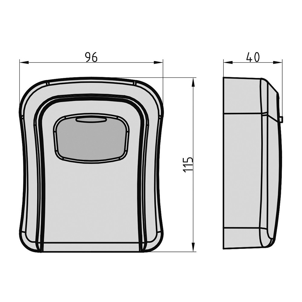 • masszív kulcstároló széf • beltéri és kültéri használatra • erős alumínium öntvény test • masszív lefelé nyíló ajtó • krómozott 4 tárcsás számzár • 10.000 elméleti kódvariáció • elcsúsztatható zártakaró fedél • falra szerelhető (rögzítő furatok hátrafelé) • legfeljebb 9 cm hosszú kulcsokhoz • rögzítő csavarokkal áruljuk