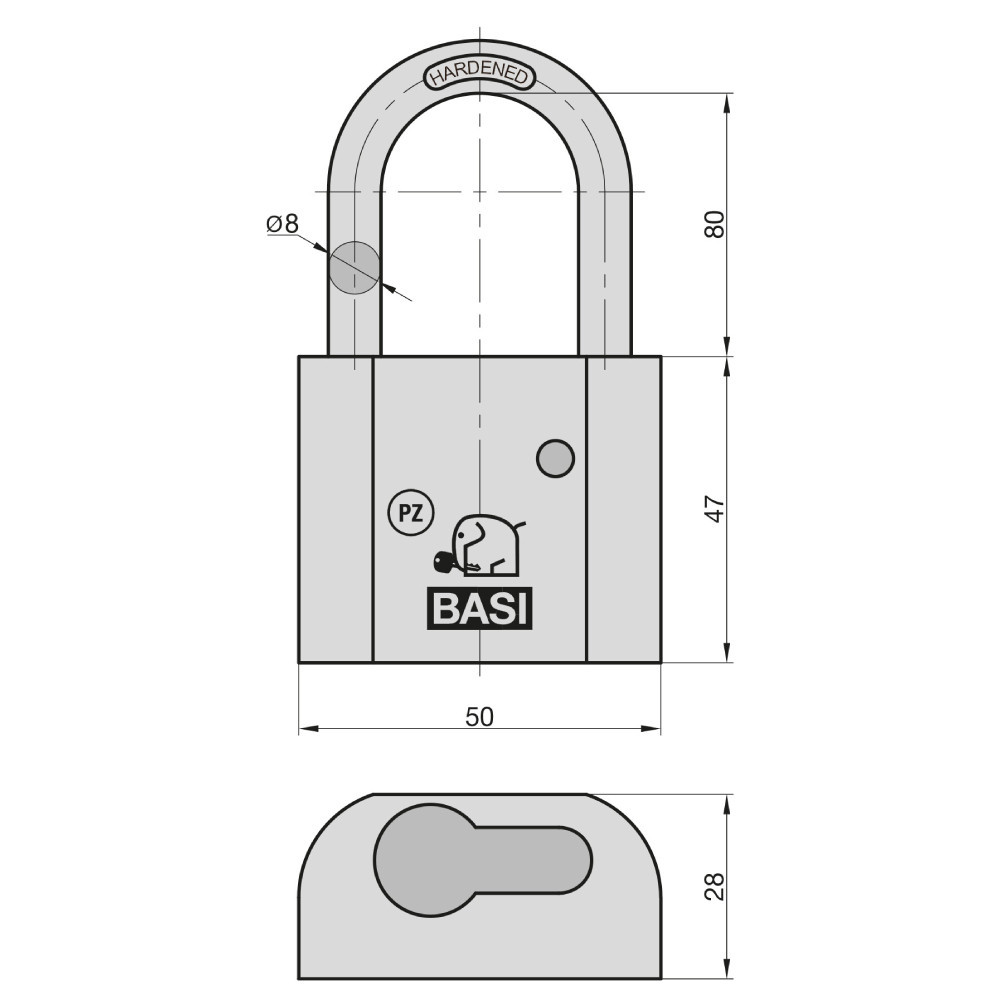 Basi VHS PZH Ni félcilinderes hosszú kengyeles lakat