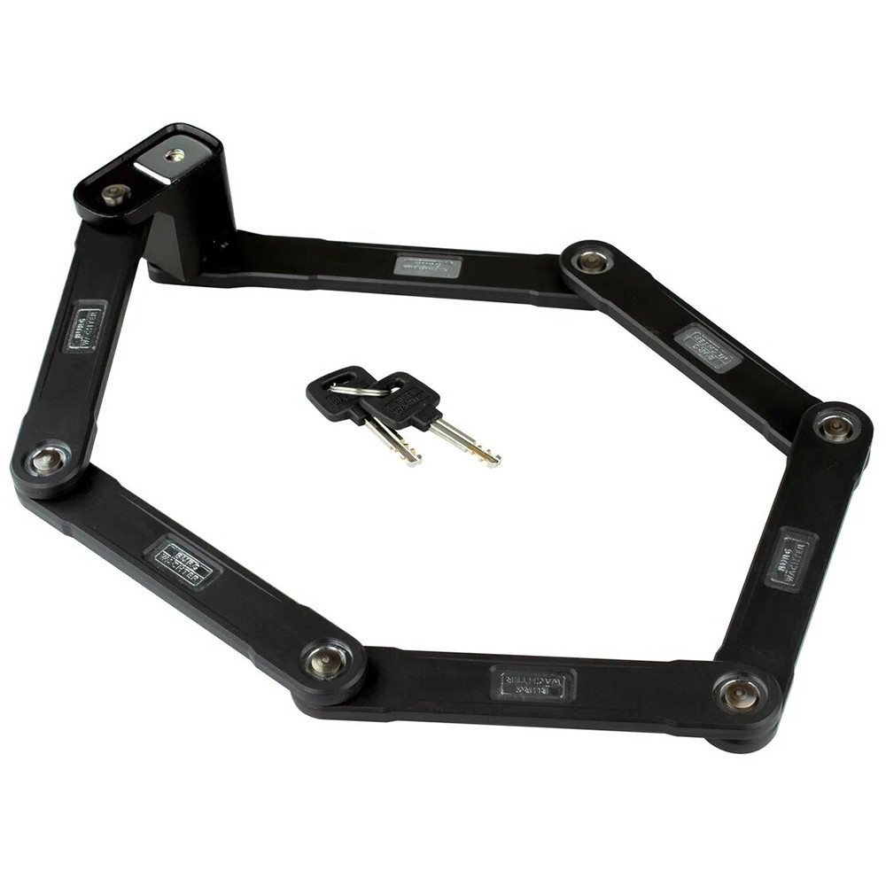 • robusztus összecsukható zár • maximális védelem feszítőszerszámok ellen • 8,5 mm vastag, 26 mm széles edzett acéllemezekből • 90 centiméteres teljes hossz • műanyag bevonat véd a karcoktól • gyors és egyszerű összecsukás • könnyen elfér a táskában • fúrásvédett hengerzár • kettő darab kulccsal • praktikus kerékpártartó • csekély 1,3 kilós súly