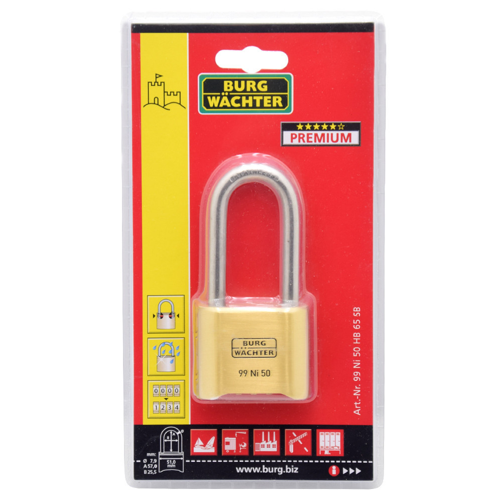 Burg Wachter No 99 Ni 50 HB 65 SB rozsdamentes biztonsági számzáras lakat