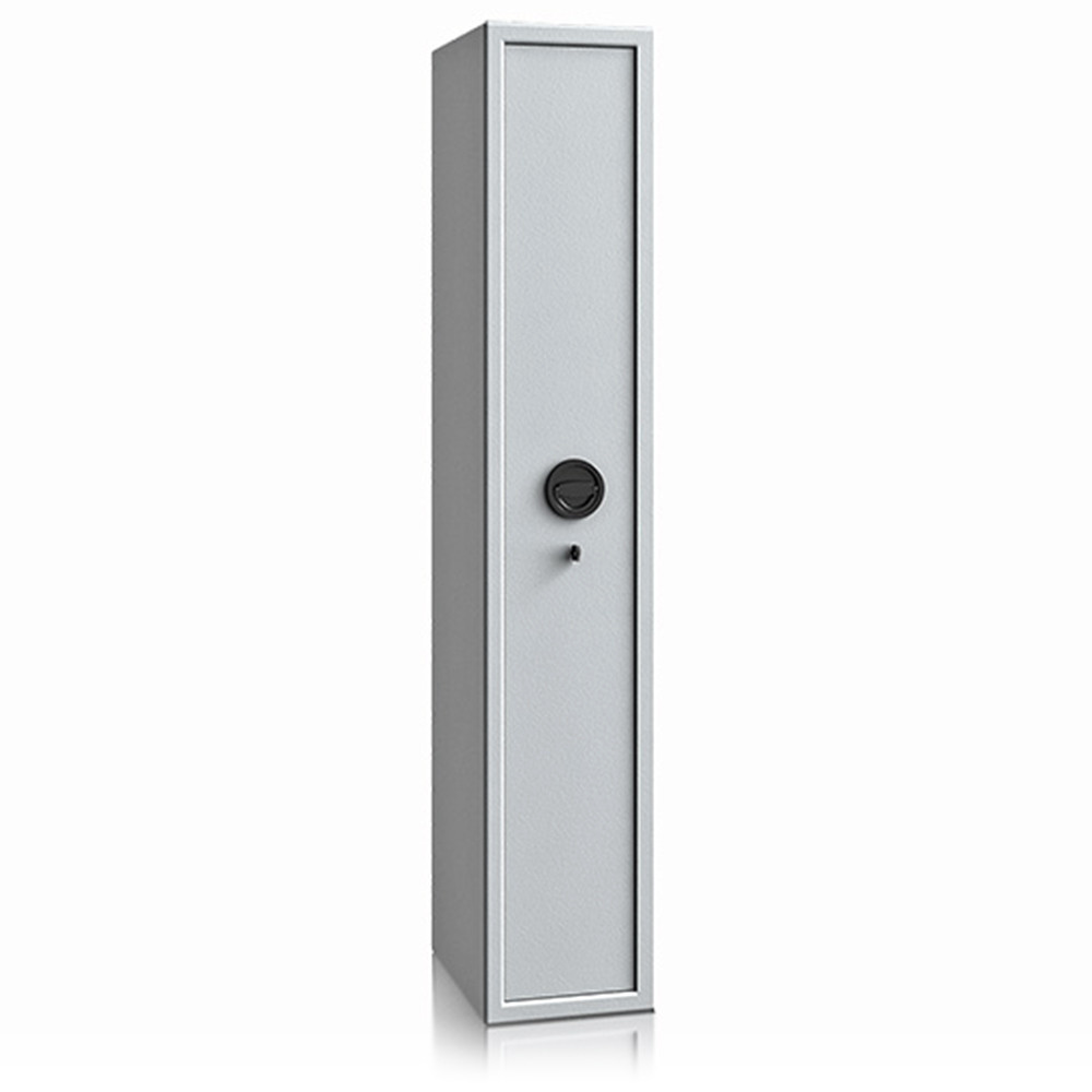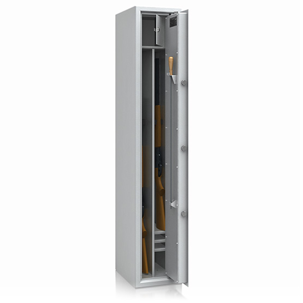 • 40 mm vastag, duplafalú acél test• 50 mm vastag, duplafalú ajtó, 3 mm-es acél borítással• 90 fokos ajtónyitás, erősített belső zsanérokkal• háromirányú zárás, 20 mm-es kerek, acél hevederekkel• felfúrás ellen mangán acéllappal védett zárszerkezet• 200 mm magas külön zárható lőszertartó cilinderzárral, kettő darab kulccsal• szivacs fegyvertartók 2, 4 vagy 5 db fegyver részére• 3 db állítható magasságú polc a szekrény jobb oldalán• ajtóra szerelt tisztítóvessző tartó• két darab 10mm-es rögzítő furat lefelé és hátrafelé• zöld (RAL 6020) vagy szürke (RAL 7035) színben