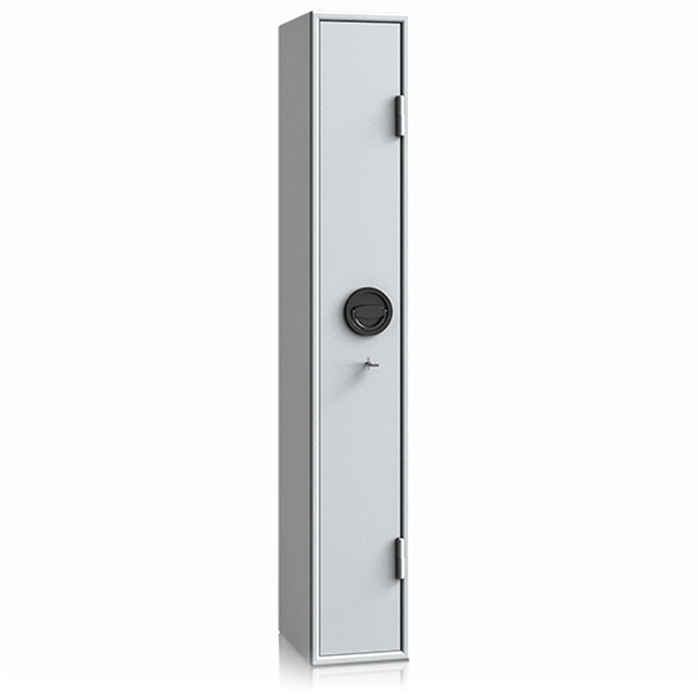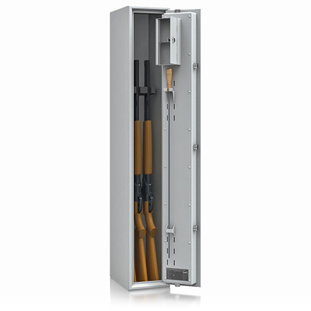 • 3 mm-es, szimplafalú acél test• 55 mm vastag, duplafalú ajtó, 3 mm-es acél borítással• 180 fokos ajtónyitás, erősített külső zsanérokkal• háromirányú zárás, 20 mm-es kerek, acél hevederekkel• felfúrás ellen mangán acéllappal védett zárszerkezet• külön zárható lőszertartó (az ajtó belső oldalán), cilinderzárral, kettő darab kulccsal (200 mm magas, 100 mm széles és 50 mm mély)• szivacs fegyvertartó 3 db fegyver részére• ajtóra szerelt tisztítóvessző tartó (magassága állítható)• két darab 10mm-es rögzítő furat lefelé és hátrafelé• zöld (RAL 6020) vagy szürke (RAL 7035) színben
