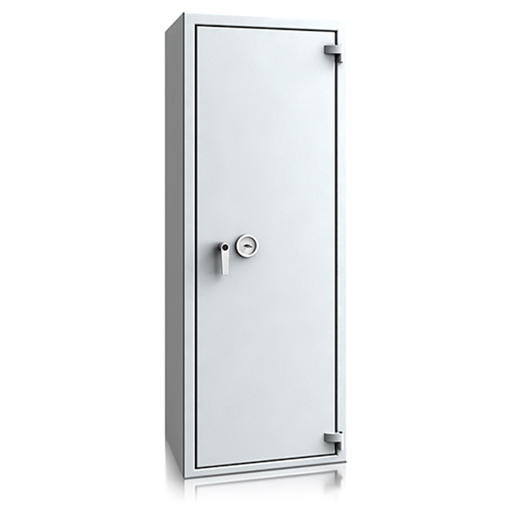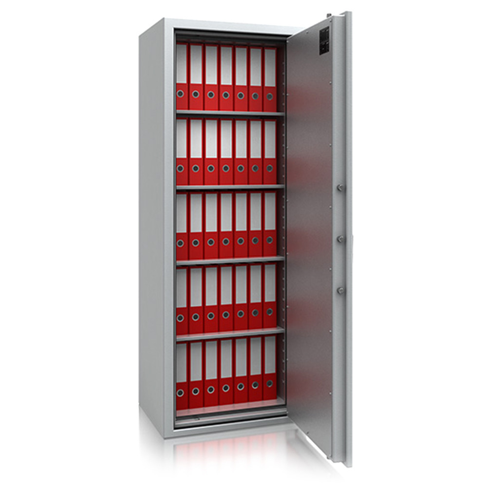 • 30 perces tűzállóság dokumentumok részére• 840C-on a belső hőmérséklet 150C alatt marad• duplafalú acél test, speciális hőszigetelő töltettel• 78 mm vastag, duplafalú acél ajtó, speciális töltettel• speciális füst,- és vízszigetelő tömítés az ajtóban• 180 fokos ajtónyitás a külső zsanéroknak köszönhetően• háromirányú zárás, 25 mm-es kerek, acél hevederekkel• erős rögzítő fülek a zsanéroldalon• felfúrás ellen mangán acéllappal védett zárszerkezet• Vaihingen 9 és 10 duplaszárnyú ajtóval készül• állítható magasságú polcok• rögzítő furat lefelé• világosszürke (RAL 7035) szín