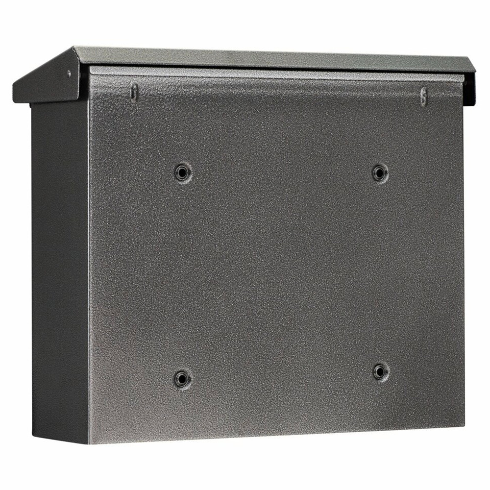 • kapun, kerítésen kívülre szerelhető postaláda • anyaga horganyzott acéllemez • műanyag porszórással színezett • időjárásálló lakkozás • hagyományos megjelenésű kültéri levélszekrény • felső bedobónyílás felhajtható tetővel • lefelé nyíló ajtó névtartóval • krómozott postaláda zár • kettő darab kulccsal • többféle színben