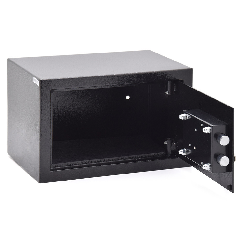 • kulcsos bútorszéf besurranó tolvajok ellen• 1 mm-es egyfalú acél test, 3 mm-es acél ajtó• 90 fokos ajtónyitás jobboldali zsanérokkal• egyirányú zárás 18 mm-es acél hevederekkel• 6 lamellás duplatollú biztonsági zár• kettő darab 76 mm-es kulccsal• rögzítő furatok lefelé és hátrafelé• elegáns fekete színben