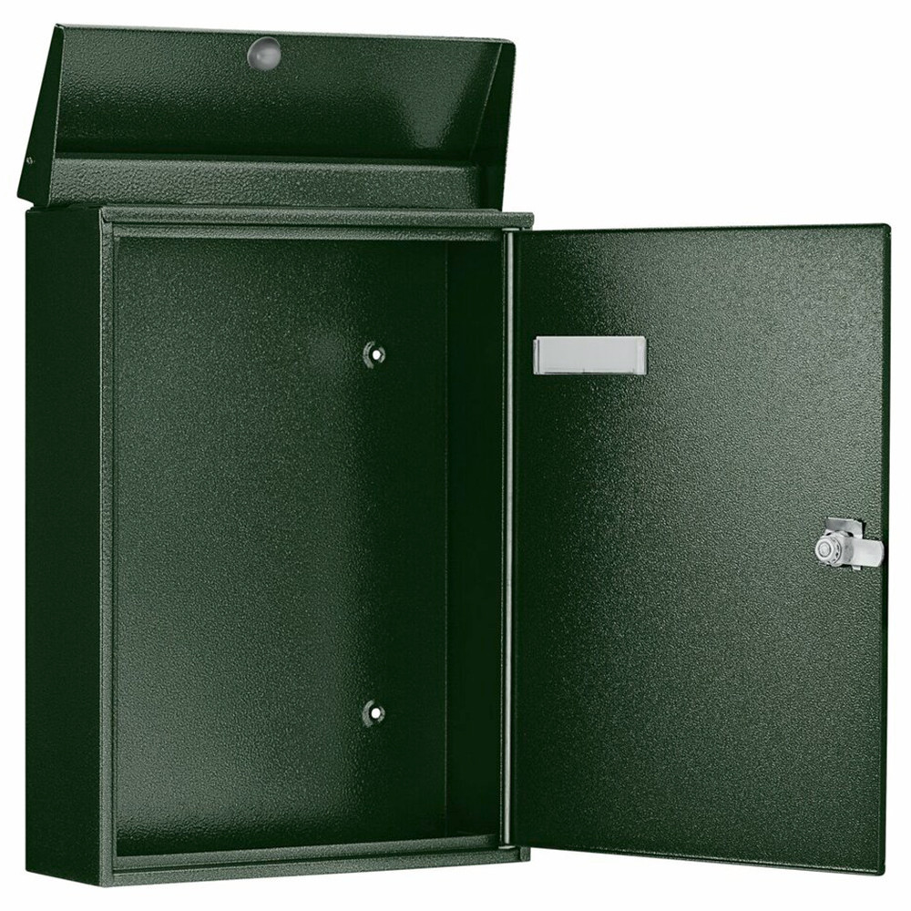 • kapun, kerítésen kívülre szerelhető postaláda • anyaga horganyzott acéllemez • műanyag porszórással színezett • időjárásálló lakkozás • hagyományos megjelenésű kültéri levélszekrény • felső bedobónyílás felhajtható tetővel • oldalra nyíló ajtó névtartóval • krómozott postaláda zár • kettő darab kulccsal • többféle színben