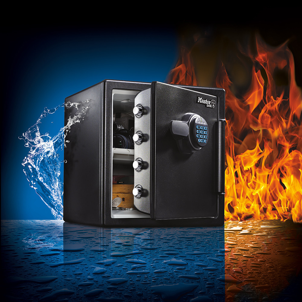 •UL / ETL szerint bevizsgált tűz- és vízálló széf•UL szerinti 60 perces tűzvédelem (927C-on tesztelve)•ETL szerint igazolt vízállóság (24 óráig tesztelve)•ETL szerint igazolt ejtés teszt (4,5m-es magasságból)•készpénz, irat, CD, DVD, USB-meghajtó, memóriakártya, merevlemez tárolására ajánlott•duplafalú acél test, hőszigetelő töltettel•műanyag belső burkolat és ajtóborítás•egyirányú zárás, 25 mm-es kerek acél hevederekkel•elektronikus számkombinációs zár•világító gumi billentyűzet•két felhasználói kód (átállítható)•egy mester kód (nem állítható)•manipuláció elleni védelem•tároló rekeszek és kulcstartó horogok az ajtón•kihúzható, átrakható műanyag tálca•kikönnyített alsó rögzítő furat (nem átfúrt)