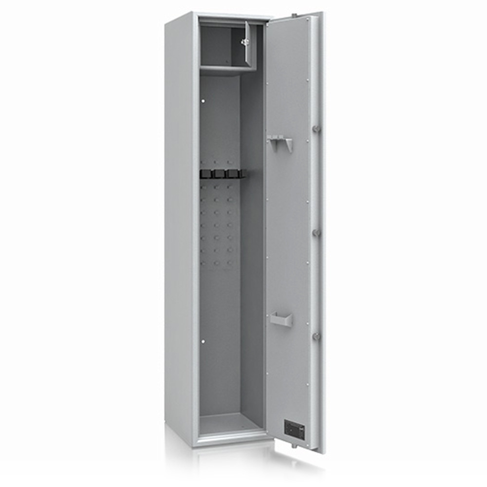 • 3 mm-es, szimplafalú acél test• 60 mm vastag, triplafalú ajtó (20 mm-es erősítéssel)• 180 fokos ajtónyitás, erősített külső zsanérokkal• háromirányú zárás, 20 mm-es kerek, acél hevederekkel• felfúrás ellen mangán acéllappal védett zárszerkezet• külön zárható lőszertartó (lecsavarozható), 3 mm-es acél ajtóval, cilinderzárral, kettő darab kulccsal (180 mm magas, 260 mm mély)• szivacs fegyvertartók 5, 6, 8 vagy 10 db fegyver részére (magassága állítható)• ajtóra szerelt tisztítóvessző tartó• két darab 10mm-es rögzítő furat lefelé és hátrafelé• zöld (RAL 6020) vagy szürke (RAL 7035) színben