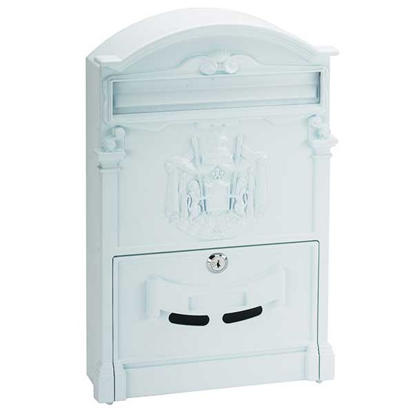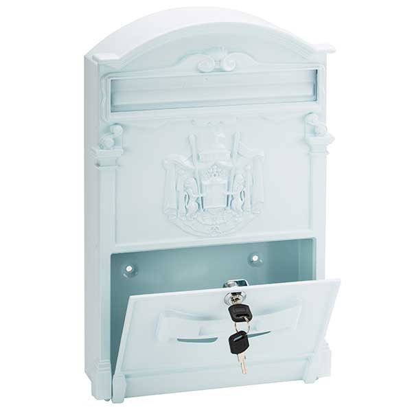 • kovácsoltvas jellegű kültéri postaláda • kapun, kerítésen kívülre szerelhető • anyaga horganyzott acéllemez • öntött alumínium előlappal • műanyag porszórással színezett • elülső bedobónyílás esővédővel • lefelé nyíló ajtó • betekintő nyílás • krómozott postaláda zár • kettő darab kulccsal • többféle színben áruljuk