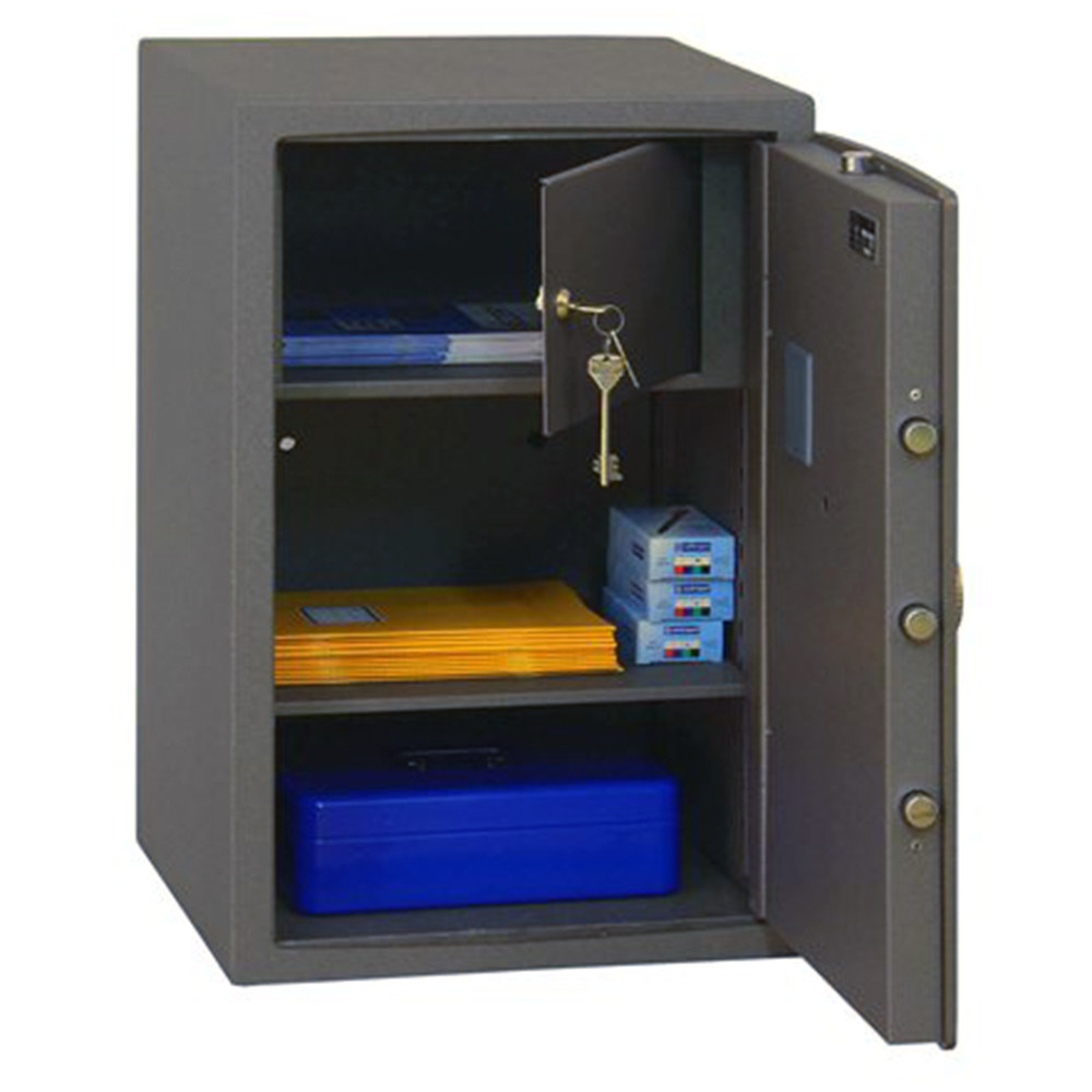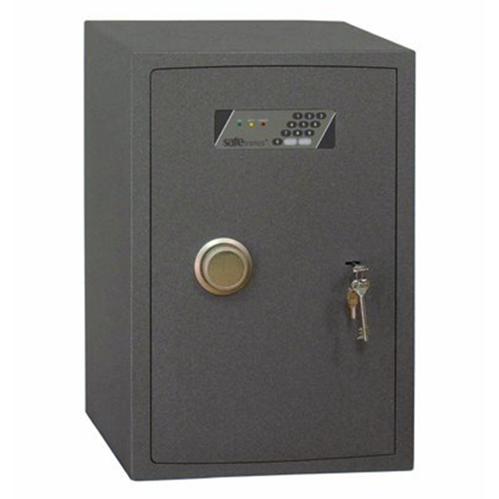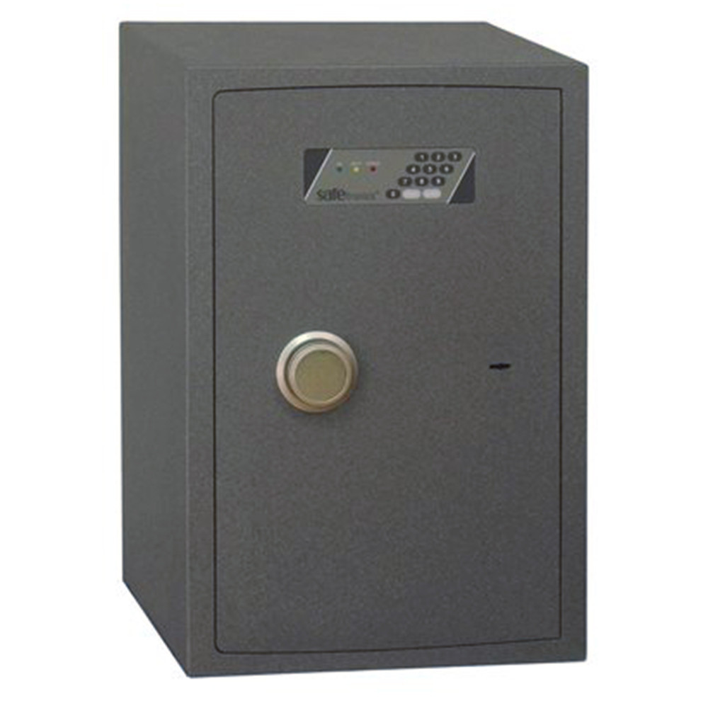 • minőségi páncélszekrény otthonába, irodájába• 20 mm vastag duplafalú acél test• 50 mm vastag duplafalú ajtó, 10 mm-es acél borítással• 110 fokos ajtónyitás erős jobboldali zsanérokkal• háromirányú záródás 22 mm-es forgó acél hevederekkel• mangán acéllappal védett zárszerkezet (fúrás ellen)• elektronikus számkombinációs zár• süllyesztett fólia billentyűzet, belső elemtartó• 3-8 számjegy közötti felhasználói kód • mechanikus vésznyitás (duplatollú kulcsos zárral)• zár 4 db Mignon LR 6 AA 1,5V elemmel működik• kilincs 25 mm-t áll ki az ajtó síkjából• praktikus iratrendező mélység (NTR 24-től)• kivehető, állítható magasságú polc• 61-es mérettől zárható belső trezorral• 10 mm-es rögzítő furatok lefelé és hátrafelé• exkluzív gránit színben szállítjuk