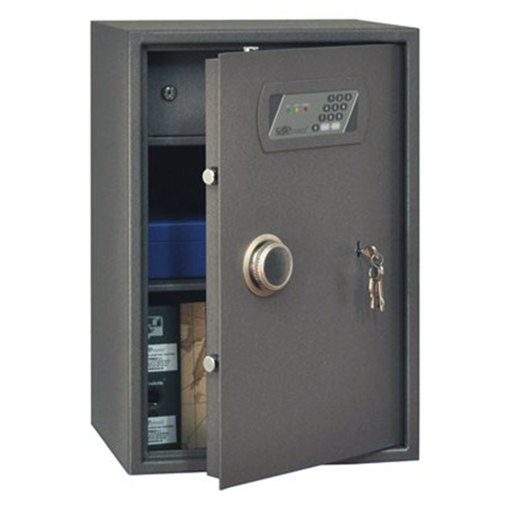 • minőségi trezor dokumentumoknak, értéktárgyaknak • 2,5 mm-es egyfalú trezor test, erős acéllemezből • 40 mm vastag duplafalú ajtó, 3 mm-es acél borítással • 90 fokos ajtónyitás erős jobboldali zsanérokkal • egyirányú (ZSL 17, 28, 43) vagy háromirányú (ZSL 65, 100, 120) zárás 22 mm-es forgó acél hevederekkel • mangán acéllappal védett zárszerkezet (fúrás ellen) • elektronikus számkombinációs zár • süllyesztett fólia billentyűzet, belső elemtartó • 3-8 számjegy közötti felhasználói kód • mechanikus vésznyitás (duplatollú kulcsos zárral) • zár 4 db Mignon LR 6 AA 1,5V elemmel működik • kilincs 25 mm-t áll ki az ajtó síkjából • praktikus iratrendező mélység • kivehető, állítható magasságú polc • 65-ös mérettől zárható belső trezorral • 10 mm-es rögzítő furatok lefelé és hátrafelé • gránit színben, 2 db vésznyitó kulccsal szállítjuk