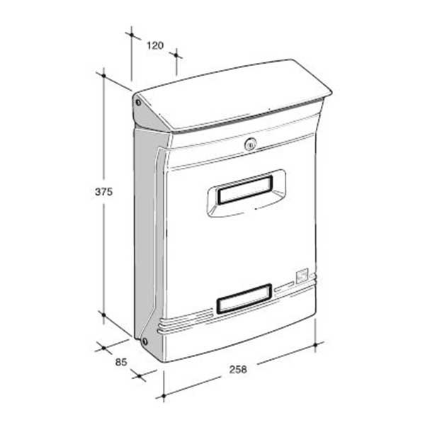 • kapun, kerítésen kívülre szerelhető postaláda• anyaga tartós alumínium öntvény• műanyag porszórással színezett• időjárásálló lakkozással• esővédett elülső bedobónyílás• lefelé nyíló ajtó• betekintő nyílás és névtartó• krómozott postaláda zár• kettő darab kulccsal• többféle színben rendelhető