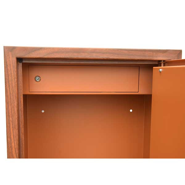 • rendőrség és biztosítók által elfogadott fegyverszekrény • 2 mm-es szimplafalú acél test • 55 mm vastag duplafalú ajtó, 2 mm-es acél borítással • 90 fokos ajtónyitás erős jobboldali zsanérokkal • háromirányú zárás, 5 db 22 mm-es kerek, acél hevederrel • 6 lamellás duplatollú biztonsági zár, kettő darab kulccsal • 150 mm magas, külön zárható lőszertartó • szivacs fegyvertartók 4, 5 vagy 10 db fegyver részére • festett bézs színű fegyverszekrény belső • erezett cseresznyefa utánzatú (fóliázott) külső • rögzítő furat lefelé és hátrafelé