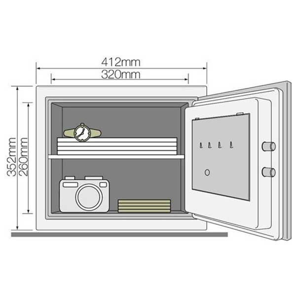 • duplafalú tűzálló széf digitális számzárral• 60 perces tűzállóság dokumentumok részére• 927C-on tesztelve 1 óra elteltével a belső hőmérséklet nem haladhatja meg a 150C-ot• 180 fokos ajtónyitás jobboldali külső zsanérokkal• magas biztonságú elektronikus számkombinációs zár• exkluzív, érintéskor világító érintő billentyűzet• illetéktelen megfigyelés elleni védelem (véletlenszerű számokkal)• csendes kódbevitel (fény vagy hangjelzés nélküli kódbevitel)• 3 és 12 számjegy közötti kódhossz (több mint 1 milliárd kombináció)• zárhoz 1 mester kód, 1 felhasználói kód és 1 vendég (egyszer használatos) kód programozható• manipuláció elleni védelem (5 téves kódbevitel után a zár letilt)• tiltási idő 3 és 9 perc között állítható (alapérték 3 perc)• lezárás funkció (igény esetén a zár 1 és 48 óra közötti időre teljesen lezárható)• elektronikus vésznyitás (külső elemmegtáplálással)• zár 4 db Mignon LR 6 AA 1,5V elemmel működik (tartozék)• 2db rögzítő furat lefelé (nem átfúrt)• antracit szürke színben áruljuk