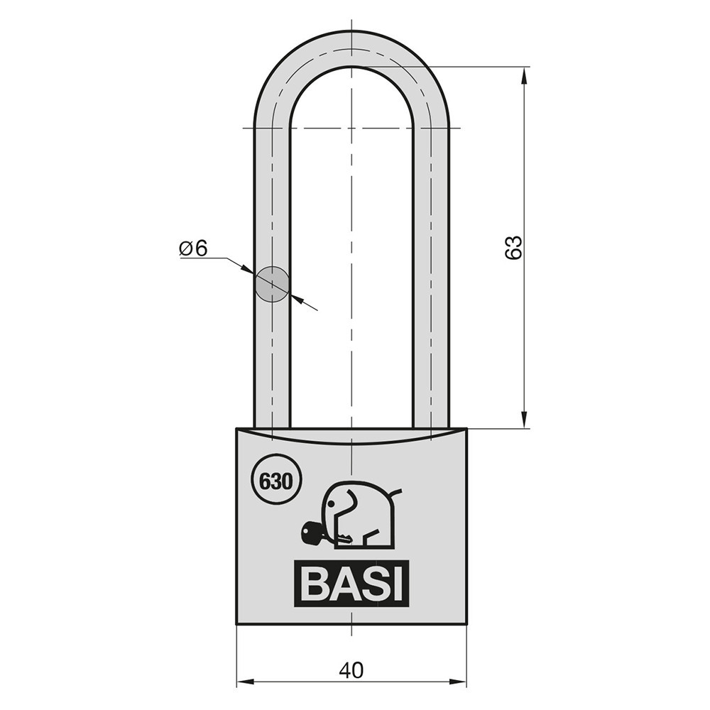 Basi VHS 630H 40 63 hosszított kengyeles alumínium lakat