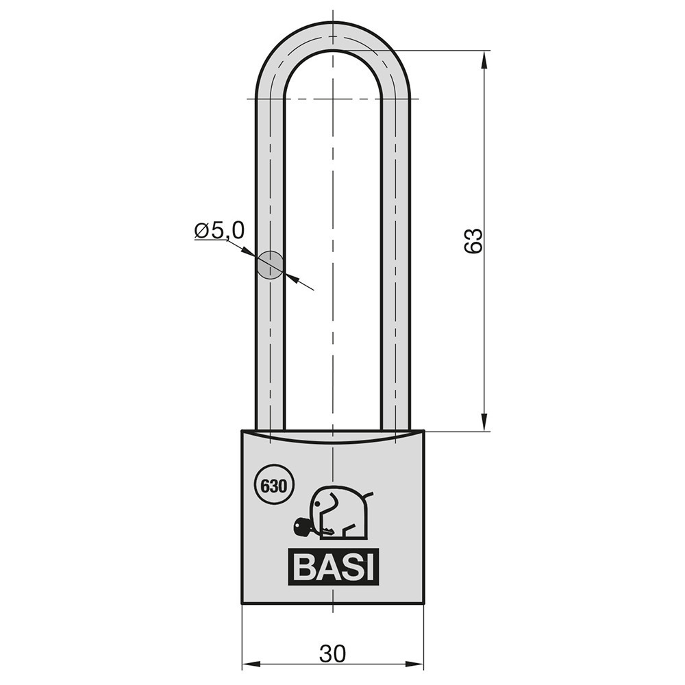 Basi VHS 630H 30 63 hosszított kengyeles alumínium lakat