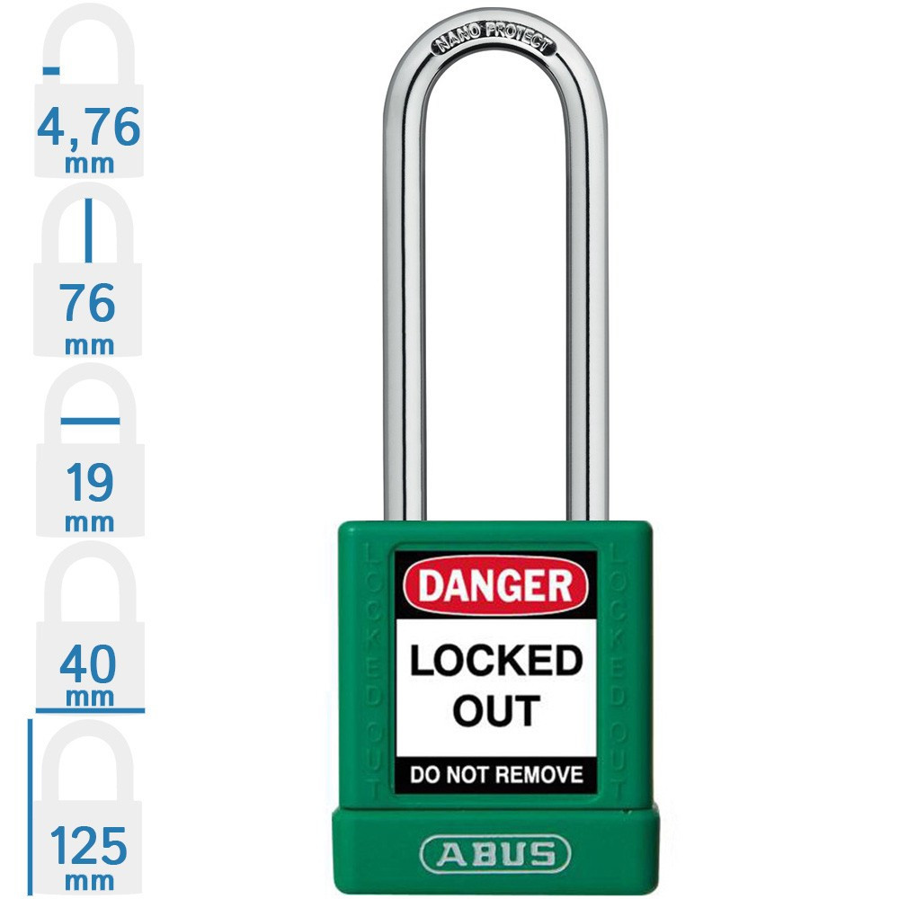 ABUS 74BS/40HB75 LOTO munkavédelmi kizáró lakat (méret: lásd a képen): speciális ötvözetű Abus lakat kétoldali golyós reteszeléssel. Acél kengyel, 20 mm-es lakat test mélység. Az ABUS 74BS/40HB75 LOTO munkavédelmi kizáró lakat 10 különböző színben rendelhető! Minőségi ABUS zárszerkezet, 1 db kulcs/lakat. A kép illusztráció, a valóságtól minimálisan eltérhet.