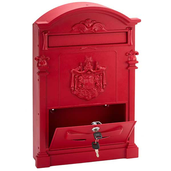 • kovácsoltvas jellegű kültéri postaláda • kapun, kerítésen kívülre szerelhető • anyaga horganyzott acéllemez • öntött alumínium előlappal • műanyag porszórással színezett • elülső bedobónyílás esővédővel • lefelé nyíló ajtó • betekintő nyílás • krómozott postaláda zár • kettő darab kulccsal • többféle színben áruljuk