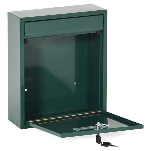 • kapun, kerítésen belülre vagy kívülre szerelhető • klasszikus megjelenésű kültéri postaláda • anyaga horganyzott acéllemez • műanyag porszórással színezett • egymás mellé és alá építhető (sorolható) • ideális kültéri társasházi postaláda • esővédett elülső bedobónyílás felhajtható esővédővel • hátsó bedobónyílás kerítésen belüli szereléshez • lefelé nyíló postaláda ajtó • plexi betekintő nyílás és névtartó • krómozott postaláda zár • kettő darab kulccsal • többféle színben áruljuk